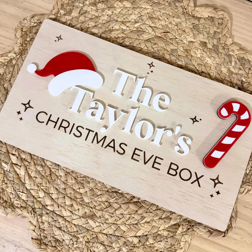 Festive Keepsake - This charming wooden Christmas Eve box is a delightful way to celebrate the holiday season. Personalize it with your family name for a special touch that makes it uniquely yours.